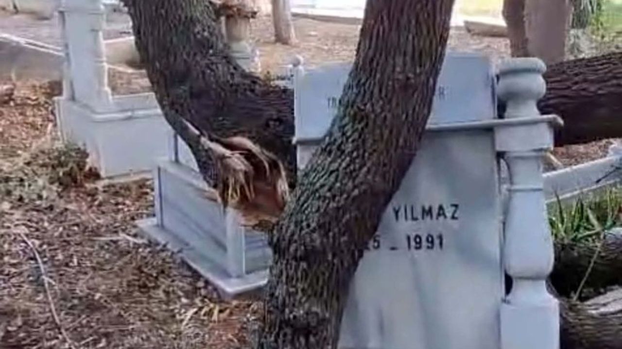 Antalya’nın Serik ilçesinde geçen perşembe günü etkili olan yağış ve şiddetli rüzgardan mezarlıkta dalları kırılan, devrilen ağaçlar kabirlere zarar verdi.